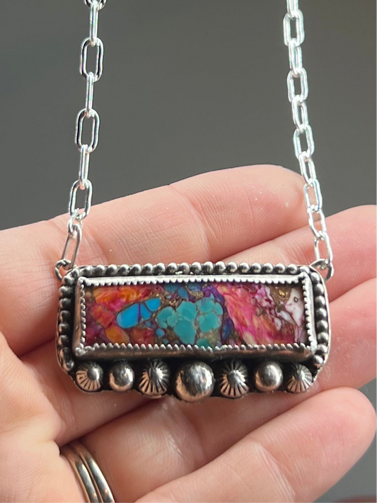 Kingman Turquoise and Spiny Oyster Bar Necklace
